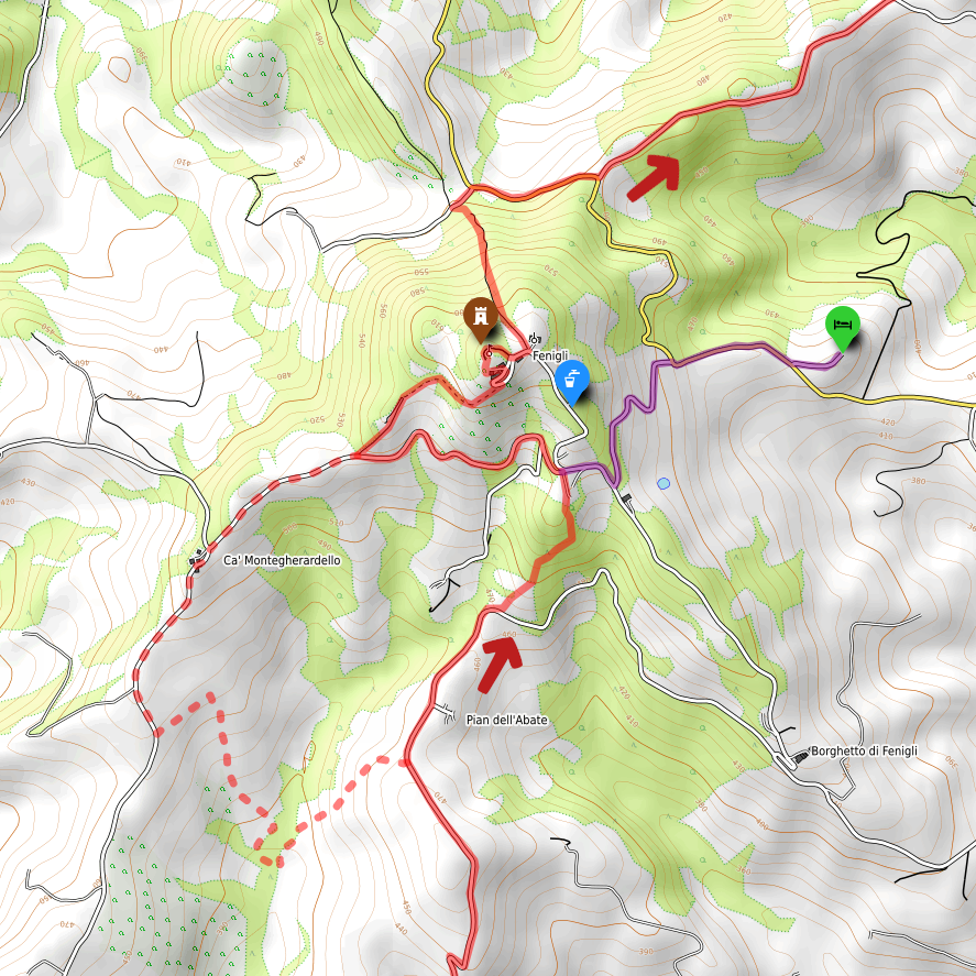 Upon arriving in Fenigli, it is well worth climbing to the top to see the ruins of the ancient castle, which offer a 360-degree panoramic view. The village is currently almost uninhabited and has been only partially restored, with some buildings still undergoing renovation.