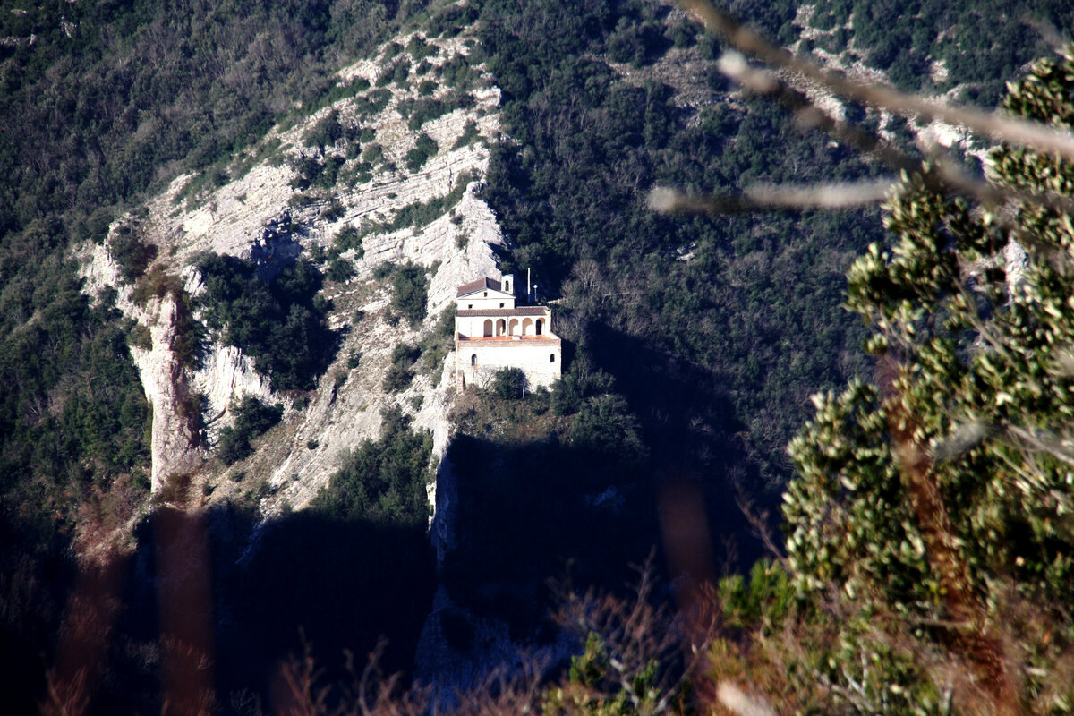 Il Santuario della Madonna del Sasso Si tratta un piccolo santuario costruito su un suggestivo sperone di roccia. Sono poche le informazioni sull’origine del santuario, ma pare che inizialmente potesse essere una fortezza longobarda, poi divenuto Eremo di frati Camandolesi (quelli del vicino Monastero di Fonte Avellana). Nel 1710 venne restaurato e divenne Santuario Mariano.